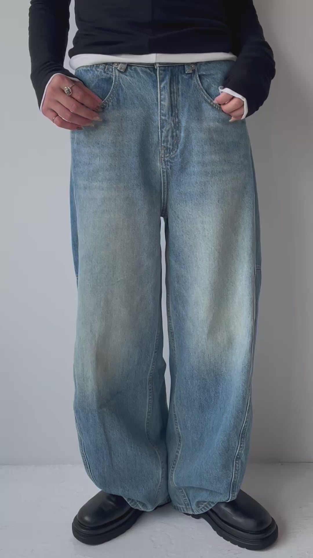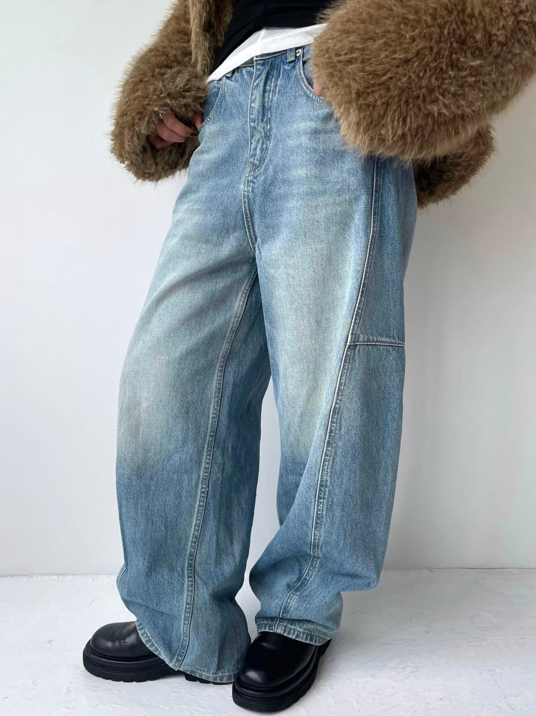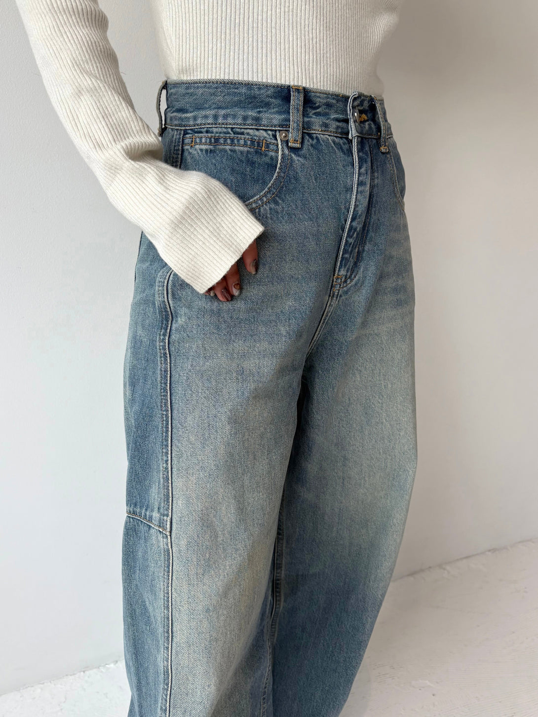 カーブシルエットが生み出すボリューム感が魅力のカーブデニム。大人のルーズ感を楽しめる一本です。柔らかく履き心地の良い素材に、薄すぎず濃すぎないブルーにほんのりベージュ加工を施し、季節を問わず着回しやすい色味に仕上げました。トレンドを取り入れつつも、どんなトップスにも合わせやすいカラーとデザインがポイント。いつものデニムコーデにさりげないアクセントを加えてくれる一本です。
