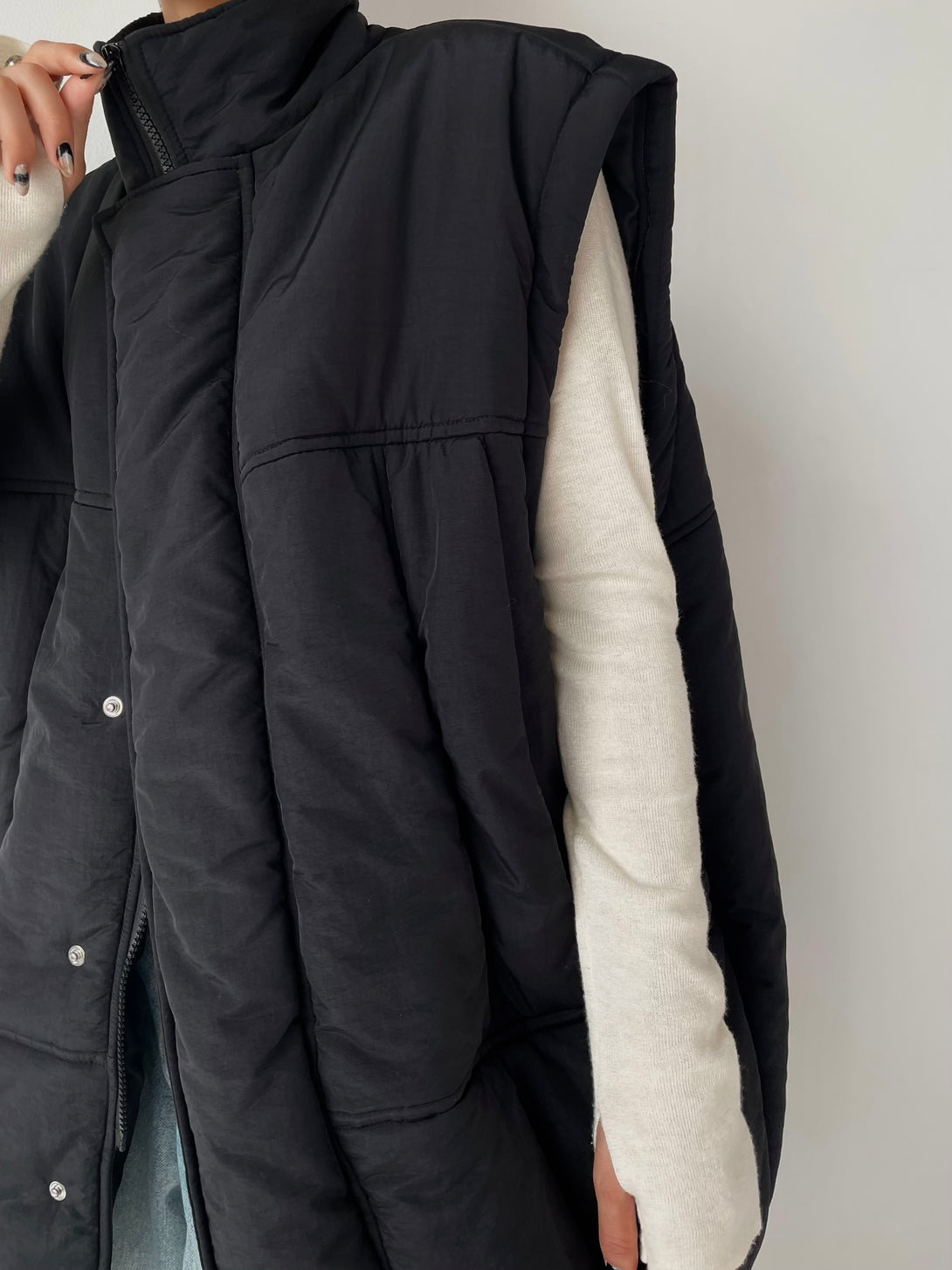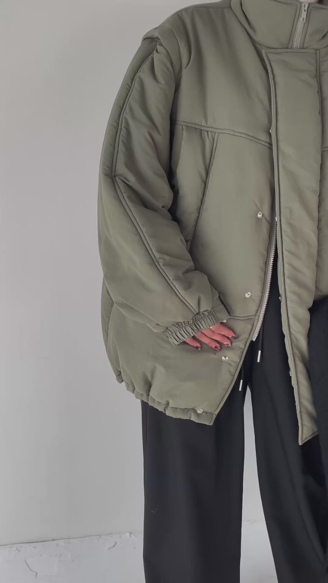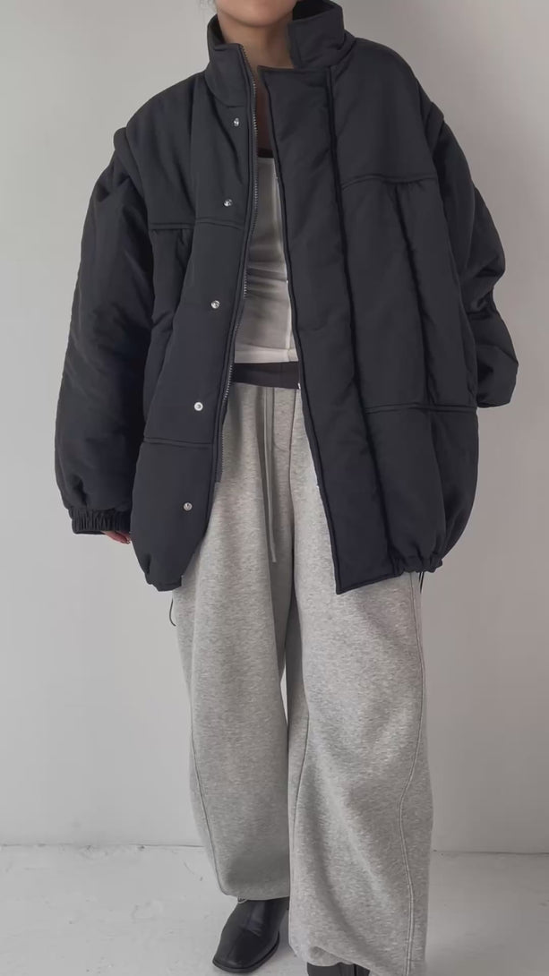 デザイン性と機能性を兼ね備えた中綿ジャケット。立体的な切り替えデザインがスタイリッシュな印象を演出します。袖部分は取り外しが可能で、気温やスタイリングに合わせてベストとしても着用できる2WAY仕様。ヒップまでしっかりカバーする丈感で安心感があり、丸みのある立体シルエットが女性らしさを引き立てます。軽量ながら保温性に優れており、厚手のニットやトレーナーを重ねても窮屈になりにくい快適な着心地です。サイドにはドローコードを配し、シルエットの調整も自由自在。袖口のマジックテープでフォルムを変化させることで、コーディネートに合わせた着こなしを楽しめます。真冬の寒さにも対応する防寒性と、着回し力を兼ね備えた万能アウター。デイリーにもアウトドアシーンにも活躍する一着です。