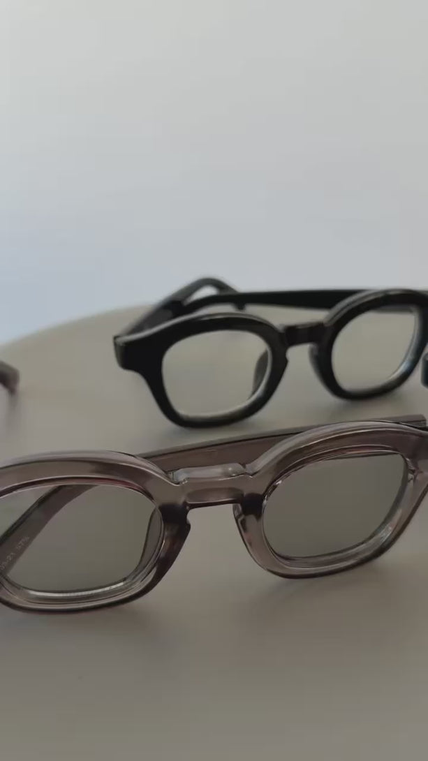 トレンド感のある厚みフレームが目を惹くアイウェア。レンズはやわらかな丸みを帯びたシェイプで、存在感抜群。身に着けるだけでコーディネートに洗練さとモードな雰囲気をプラスしてくれる一本です。クリアは伊達メガネとして日常使いにぴったり。グリーンはサングラスとして、紫外線対策やお出かけシーンに最適です。 内側にはさりげなくefuロゴを刻印し、ディテールにもこだわりました。