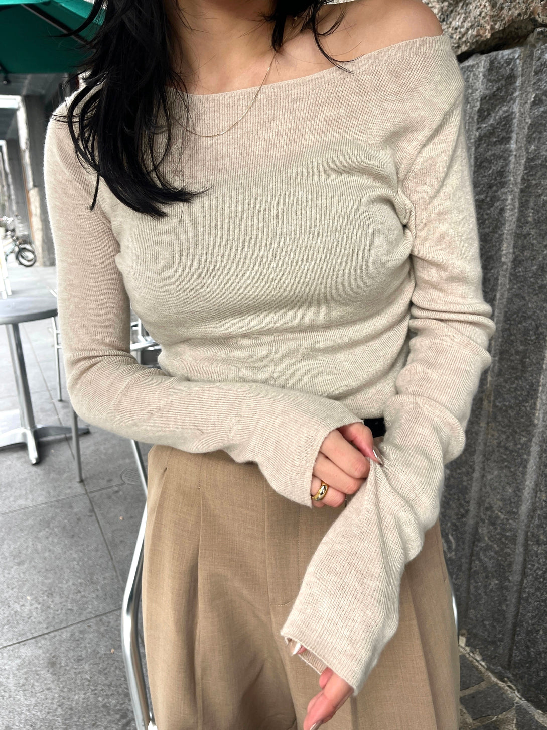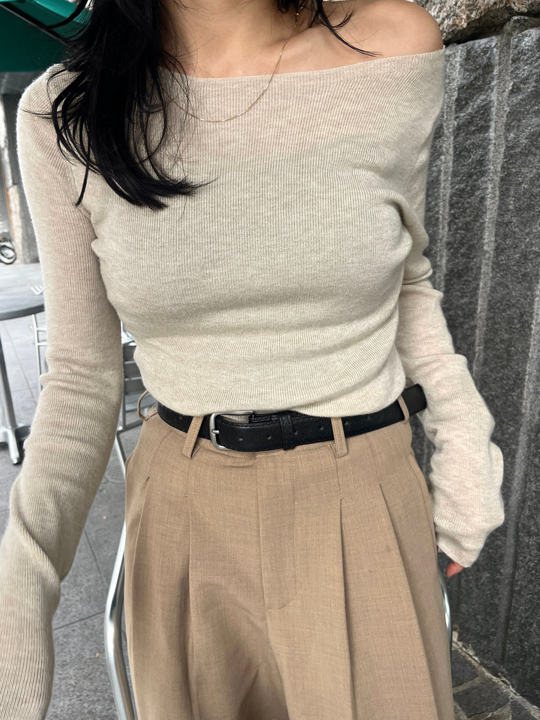 襟元の抜け感が女性らしい、薄手リブ素材のシアーニット。身体にすっきりと沿うシルエットとシンプルなデザインで、上品さと大人の抜け感を演出します。デコルテが開きすぎない程よいカットラインにこだわり、ボートネックとしても、肩を落としてワンショルとしても楽しめる2WAY仕様。ベーシックながらもこなれ感のある一枚で、長いシーズン着まわせる優秀アイテムです。1枚でさらりと着ても、ジャケットや羽織のインナーとしても映える万能さ。つい色違いで揃えたくなる、秋冬のマストニットです。